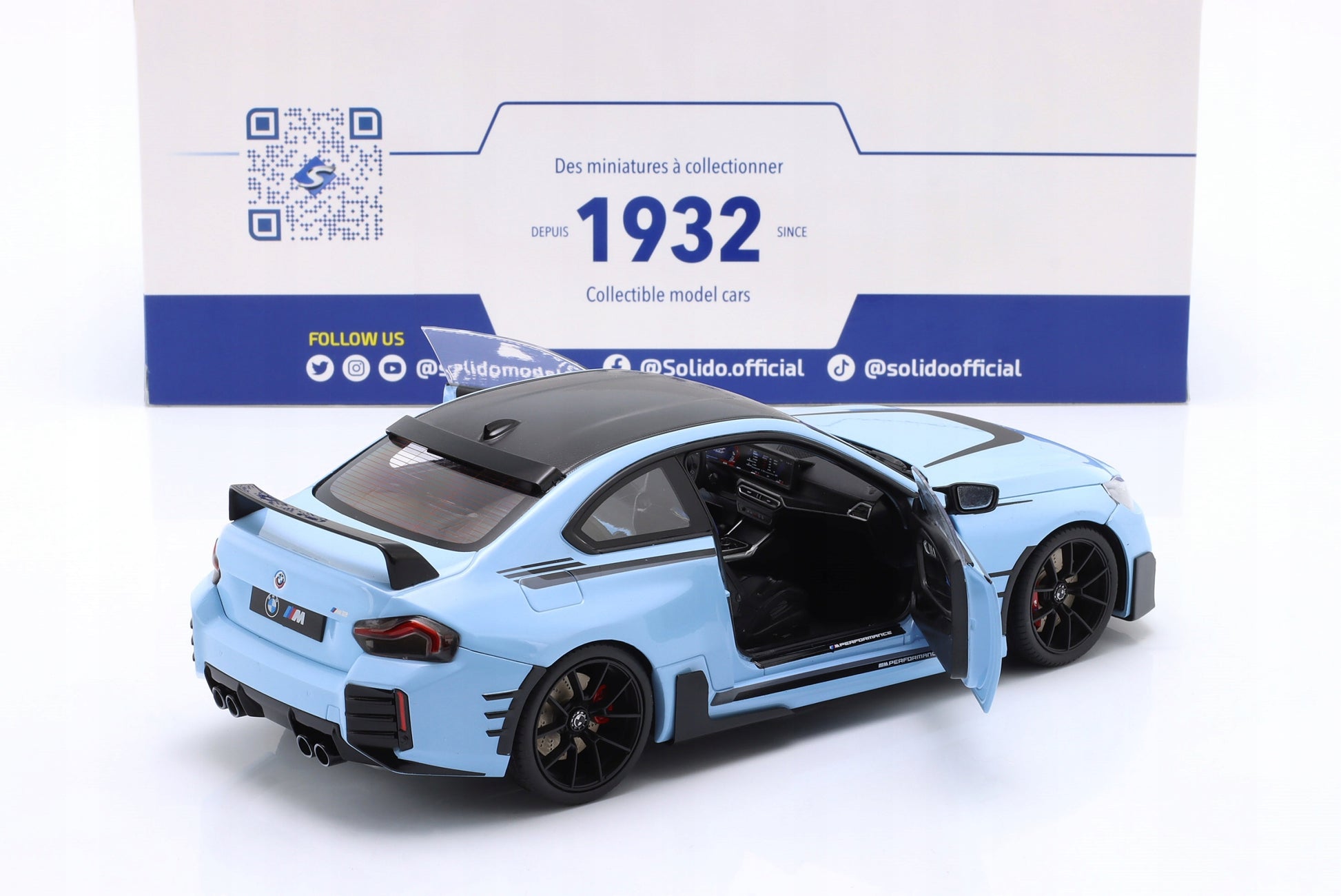 Macheta BMW M2 Performance Parts 2024 bleu , produsa la scara 1/18 de Solido.