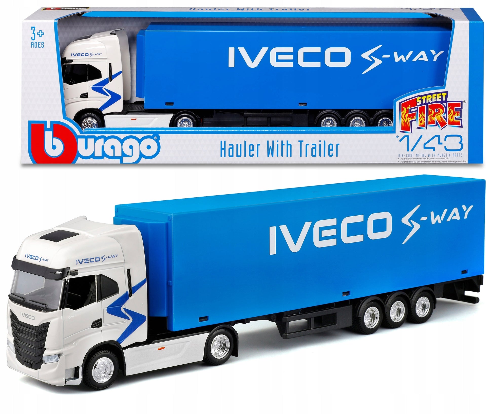 Macheta Camion TIR Iveco S-Way cu remorca , produsa la scara 1/43 de Bburago.