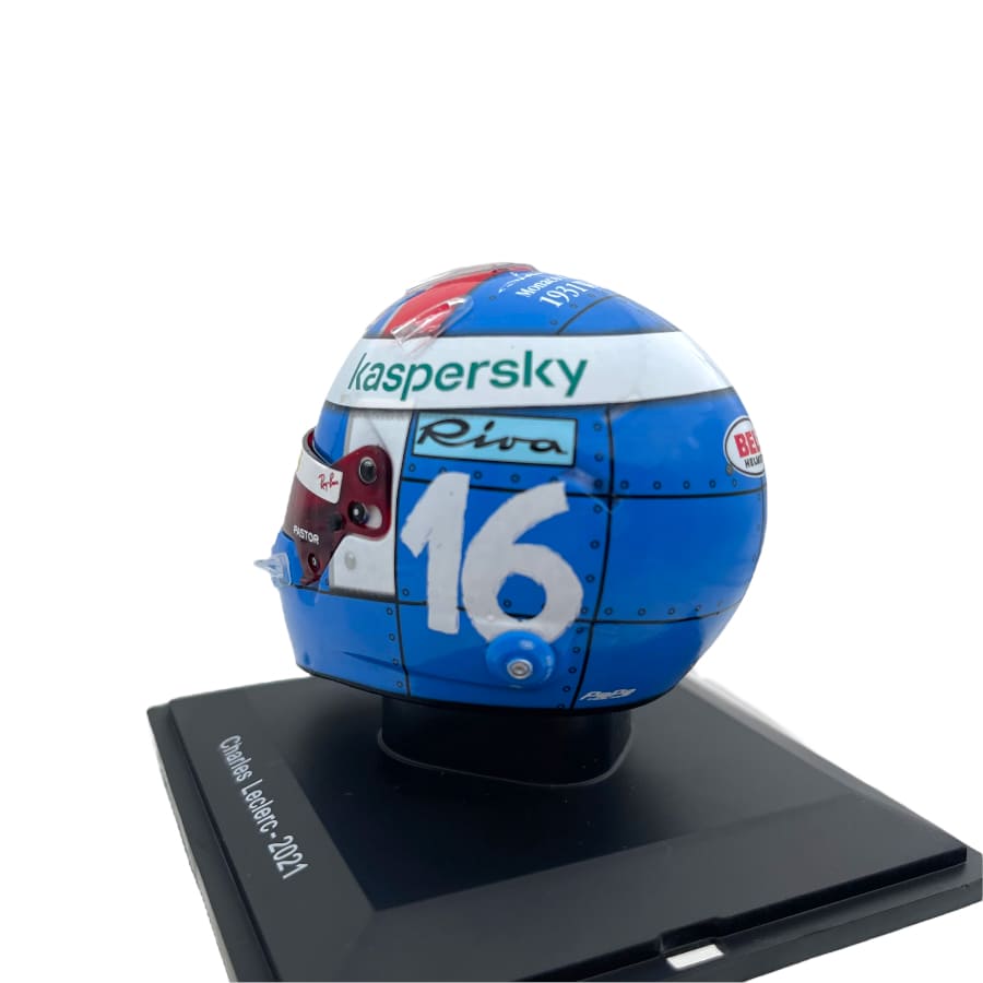 Casca Charles Leclerc Scuderia Ferrari #16 Monaco GP 2021 cu vitrina plexiglass - 1/5 Spark