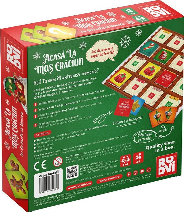 Dă startul distracției de sărbători și adu magia Crăciunului în sânul familiei! Acasă la Moș Crăciun este un joc de societate antrenant ce îmbină atmosfera de sărbătoare cu bucuria conectării prin joc.
