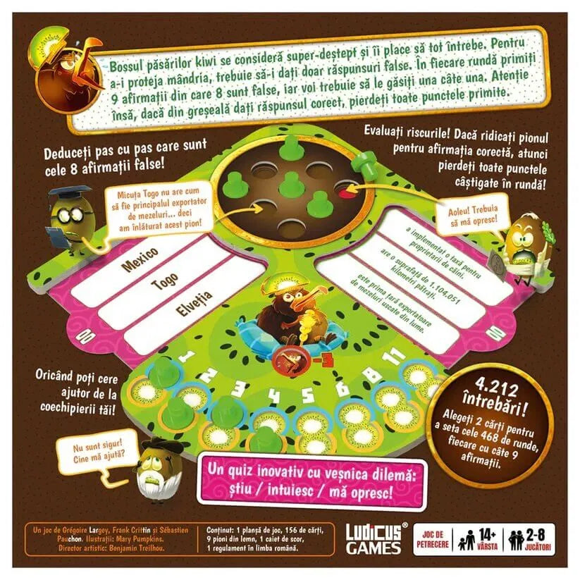 Marele Kiwiz, lb. romana, este joc de petrecere inovator, interactiv si teribil de inteligent! Raspunde la intrebari triviale si gestioneaza-ti riscul pentru a castiga puncte pentru echipa ta!