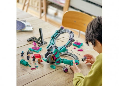 Aceasta nava spatiala construibila este pe atat de uimitoare pe cat arata. Are o carlinga cu deschidere si spatiu pentru 3 minifigurine, un compartiment secret pentru o alta minifigurina, magazii pentru arme si accesorii si 2 nave mai mici care se desprind de nava-mama. Setul include 5 minifigurine infatisand personaje din film: Mantis, Drax, Star-Lord, Nebula si Adam Warlock. Nava poate fi usor luata in maini pentru a „goni” prin spatiu. Cand actiunea ia o pauza pana a doua zi, nava arata grozav expusa pe stativul ei in camera oricarui copil. Pentru a adauga experientei o dimensiune digitala, copiii pot folosi aplicatia LEGO Builder pentru a apropia si roti modelele in 3D, salva seturi si monitoriza progresul constructiei.