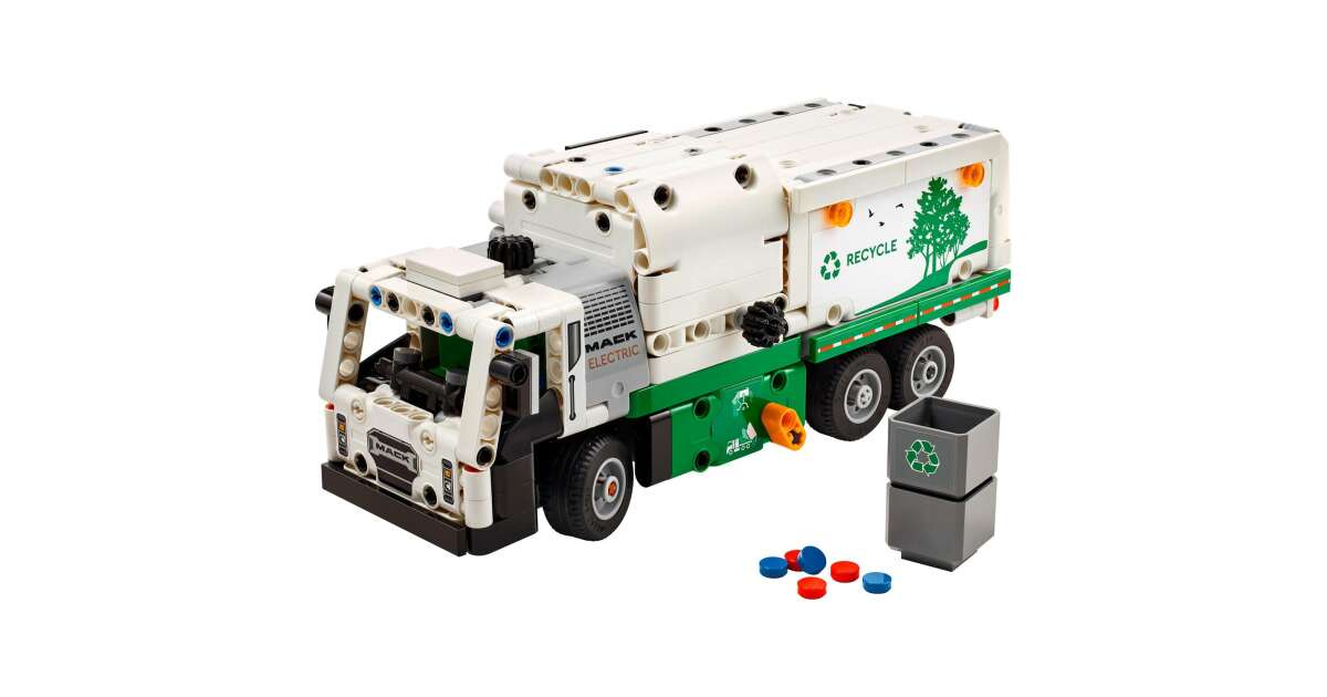 - Camion de jucarie pentru copii de 8+ ani – LEGO® Technic Autogunoiera Mack® LR Electric, conceputa pentru fete si baieti, include un incarcator lateral pentru a prinde, ridica si rasturna tomberoanele de gunoi;