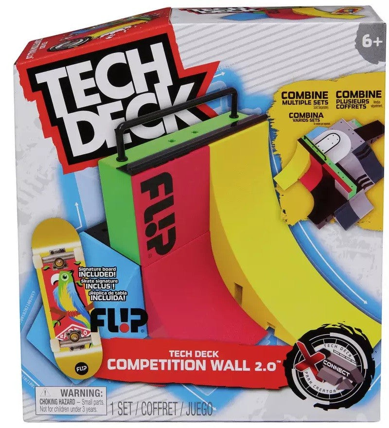 Ia putin aer cu Tech Deck, placi profesionale cu grafica autentica de la companii de skate reale. Setul de rampa pentru creatori de parc X-Connect Competition Wall include tot ce aveti nevoie pentru a construi un parc personalizat uimitor in care va puteti perfectiona abilitatile de skateboarding. Configurati diferite combinatii cu rampe verticale, o rampa cu pana si o sina de ajutor pentru a invata si a va dezvolta trucurile. Cresteti rampa, slefuiti marginea, stati pe sina sau configurati si personalizati locul cum doriti. Innebuneste prin parc cu placa profesionala exclusiva Flip Skateboards inclusa si adauga-o la colectia ta de mini skateboard. Conectati parcul cu alte rampe compatibile cu X-Connect pentru a construi cel mai bun parc pentru placi. Utilizati Competition Wall 2.0 X-Connect Park Creator cu colectia de placi Tech Deck sau Tech Deck BMX (fiecare vandut separat). Mini-skateboardurile si seturile de rampe Tech Deck sunt cadoul perfect pentru fetele cu varsta intre 6-8 ani care iubesc jucariile mici, cool si mini marci, sau o alternativa la masinile de jucarie pentru baietii de 6-8 ani. Daca sunteti in cautarea unor grafice de skate reale de la companii de skate reale, trebuie sa fie Tech Deck - incepeti usor, apoi faceti totul si strangeti-le pe toate.